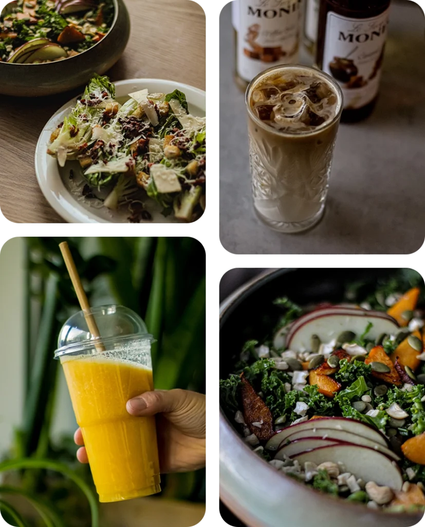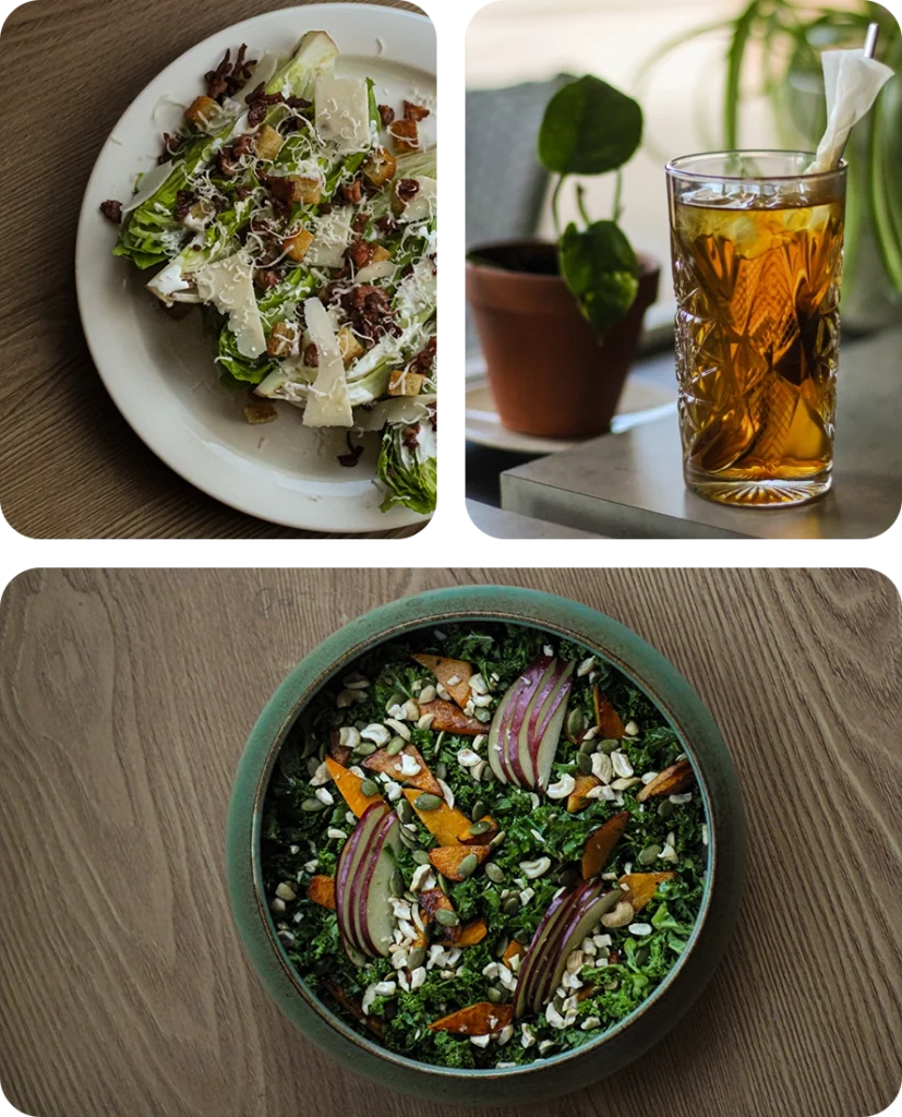 Hos oss hittar du fräscha sallader, hembakade kakor och nymalet kaffe – alltid tillagat med omtanke på fräscha råvaror. Perfekt för en snabb lunch, en lugn fika eller ett möte i gott sällskap.